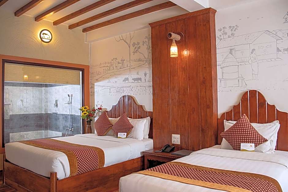 The pool with a view and hot tub are the standout features of this twin room. This air-conditioned twin room is consisted of of a flat-screen TV with cable channels, a private bathroom as well as a terrace with garden views. The unit has 2 beds.